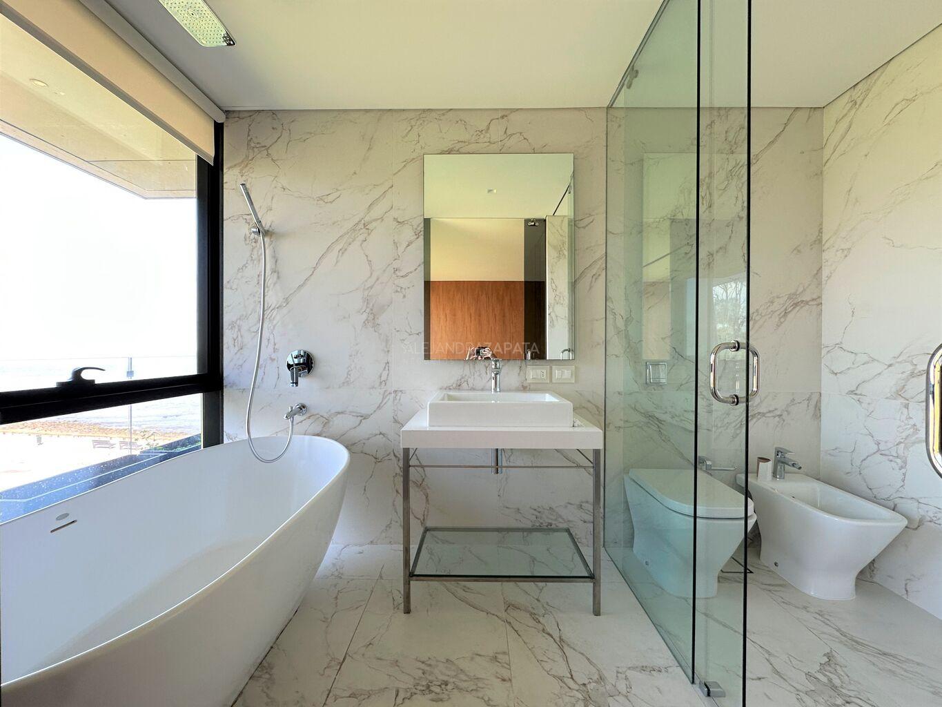 Por escalera interna bajamos al piso donde se encuentra el área intima. Master suite con salida a gran terraza con una vista impresionante, que le da amplitud y continuidad a la habitación.