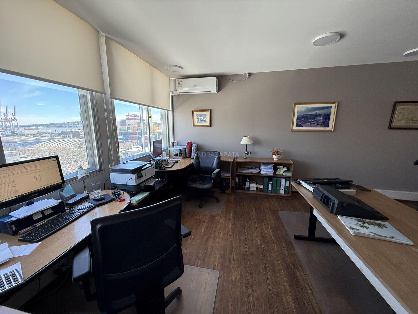Lugar de trabajo abierto con vista a la bahía y al Cerro de Montevideo.