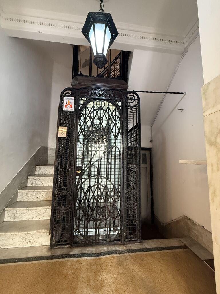 Al apartamento se accede por un hermoso ascensor de época, una joyita.... a través de acceso por el área de escalera, se transitan dos pisos hasta llegar a la azotea con parrillero, transitable, y de uso común.