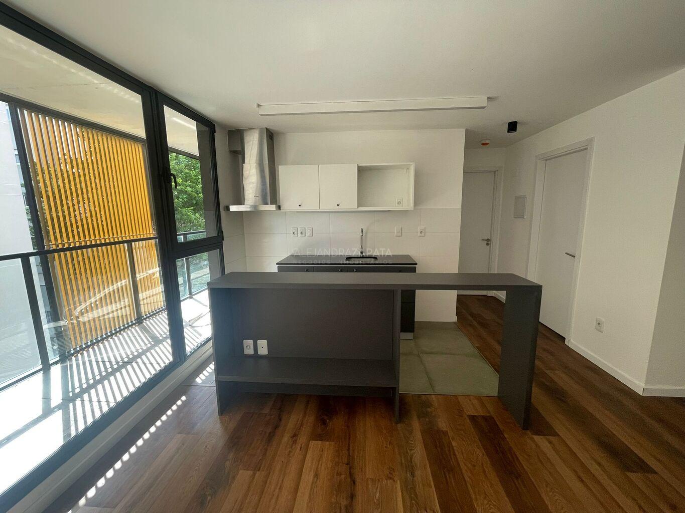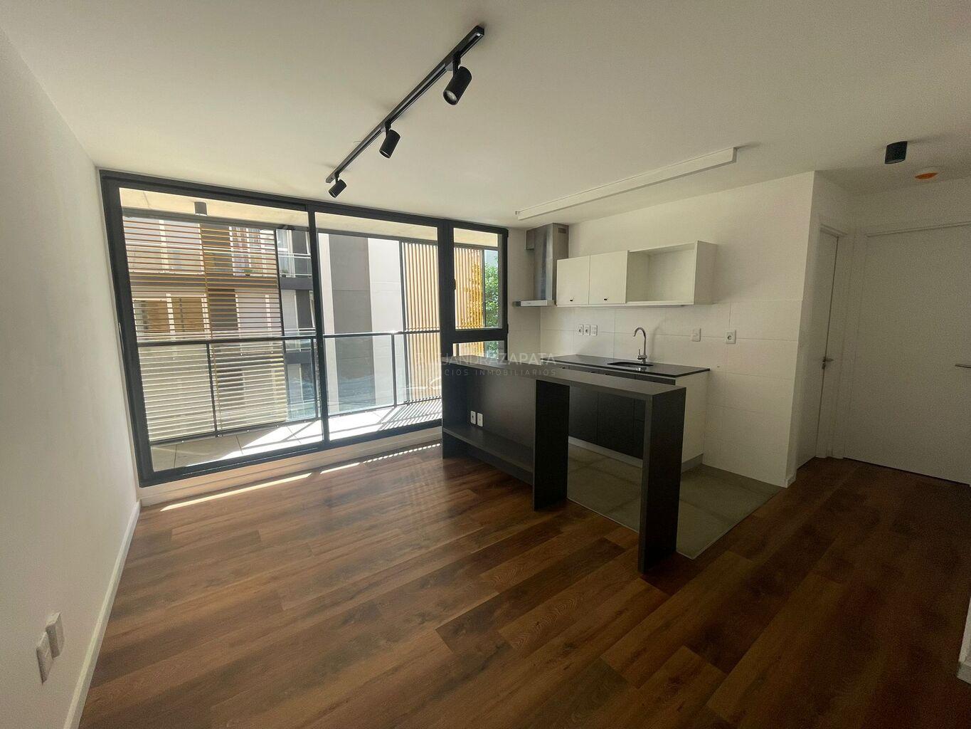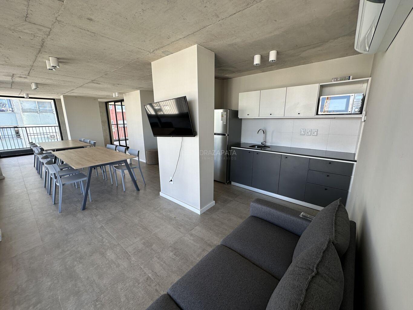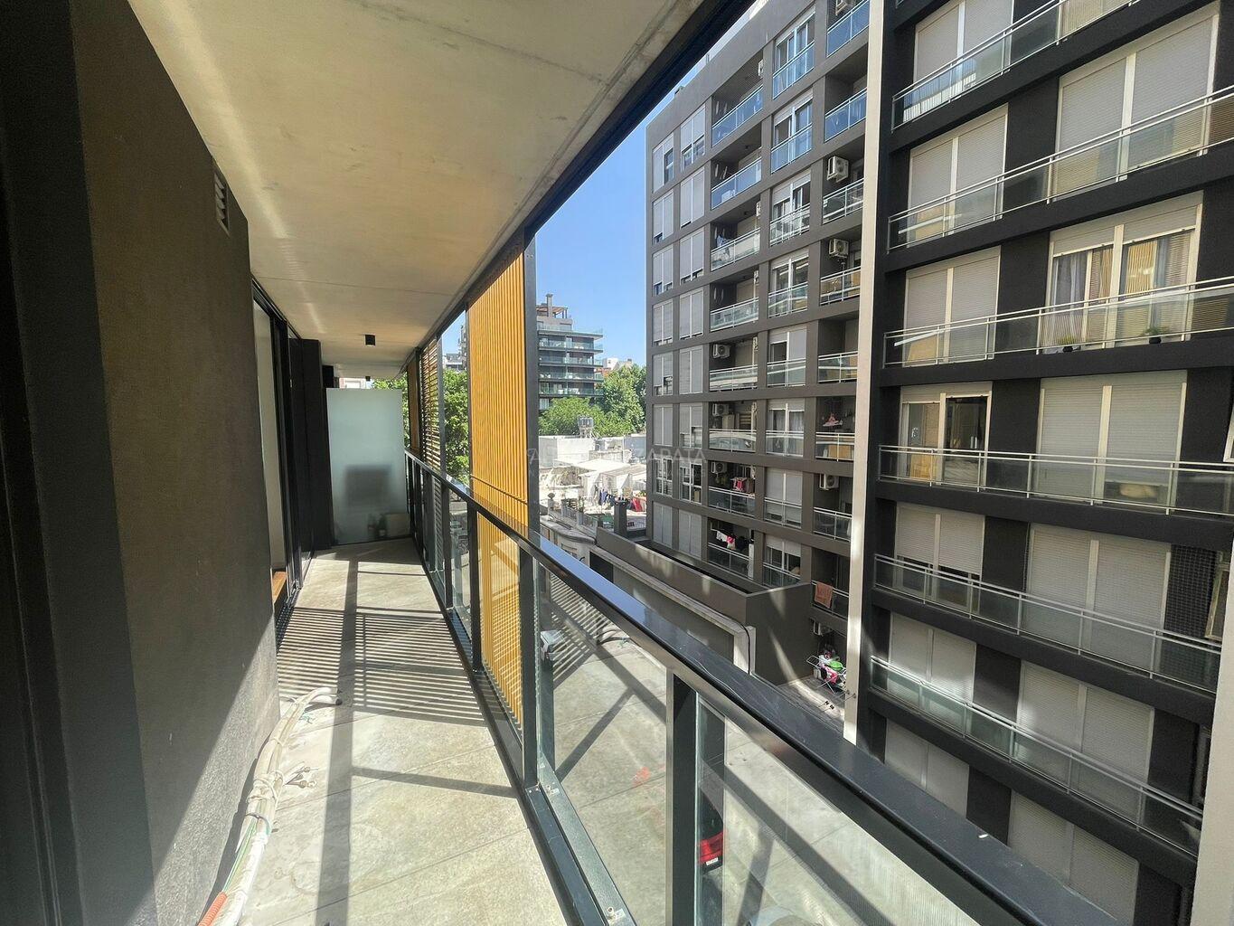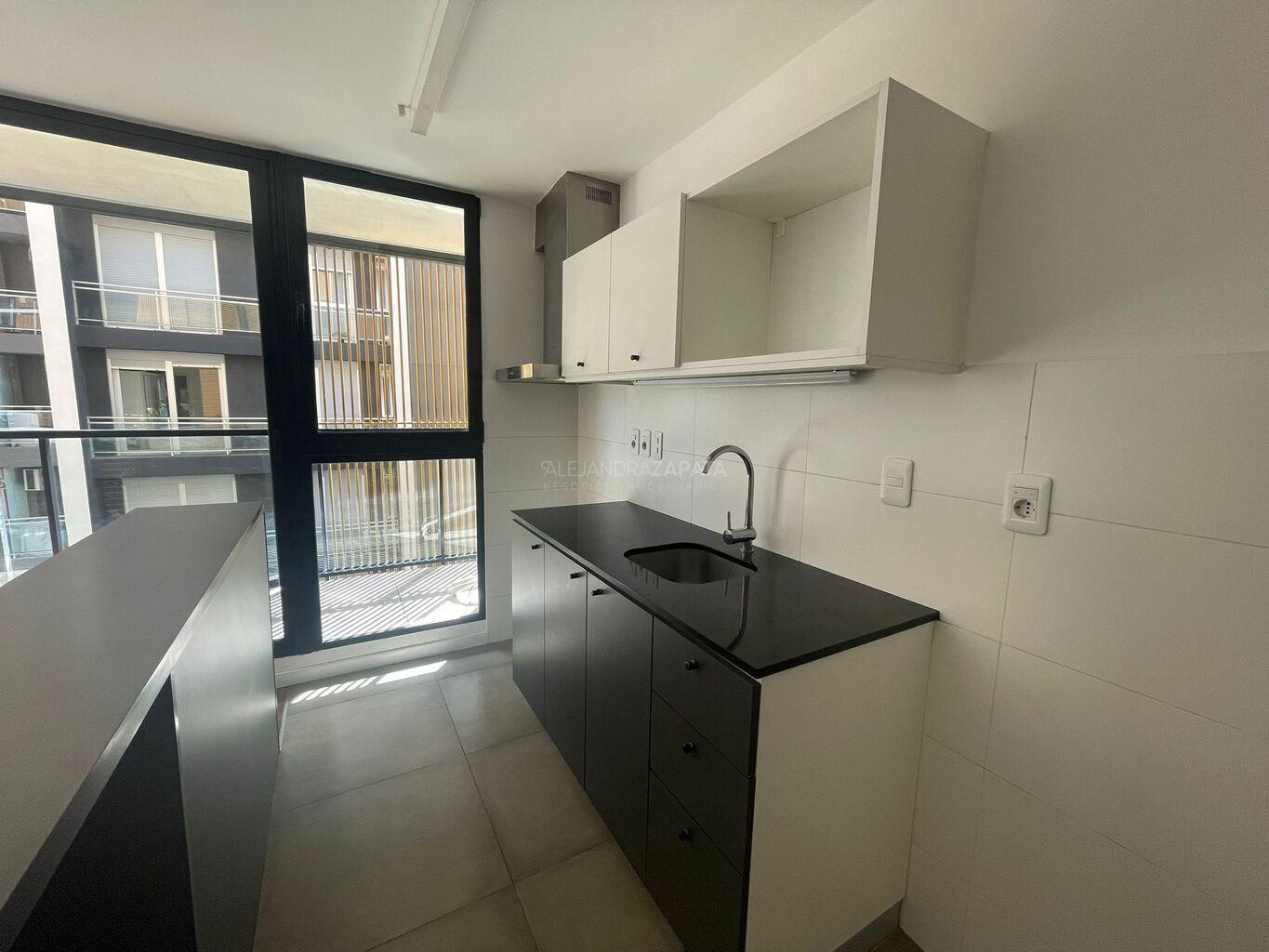 Apartamento todo al frente, tiene un living comedor super amplio con cocina integrada, definida mediante una barra divisoria y placares sobre y bajo mesada. Campana extractora.