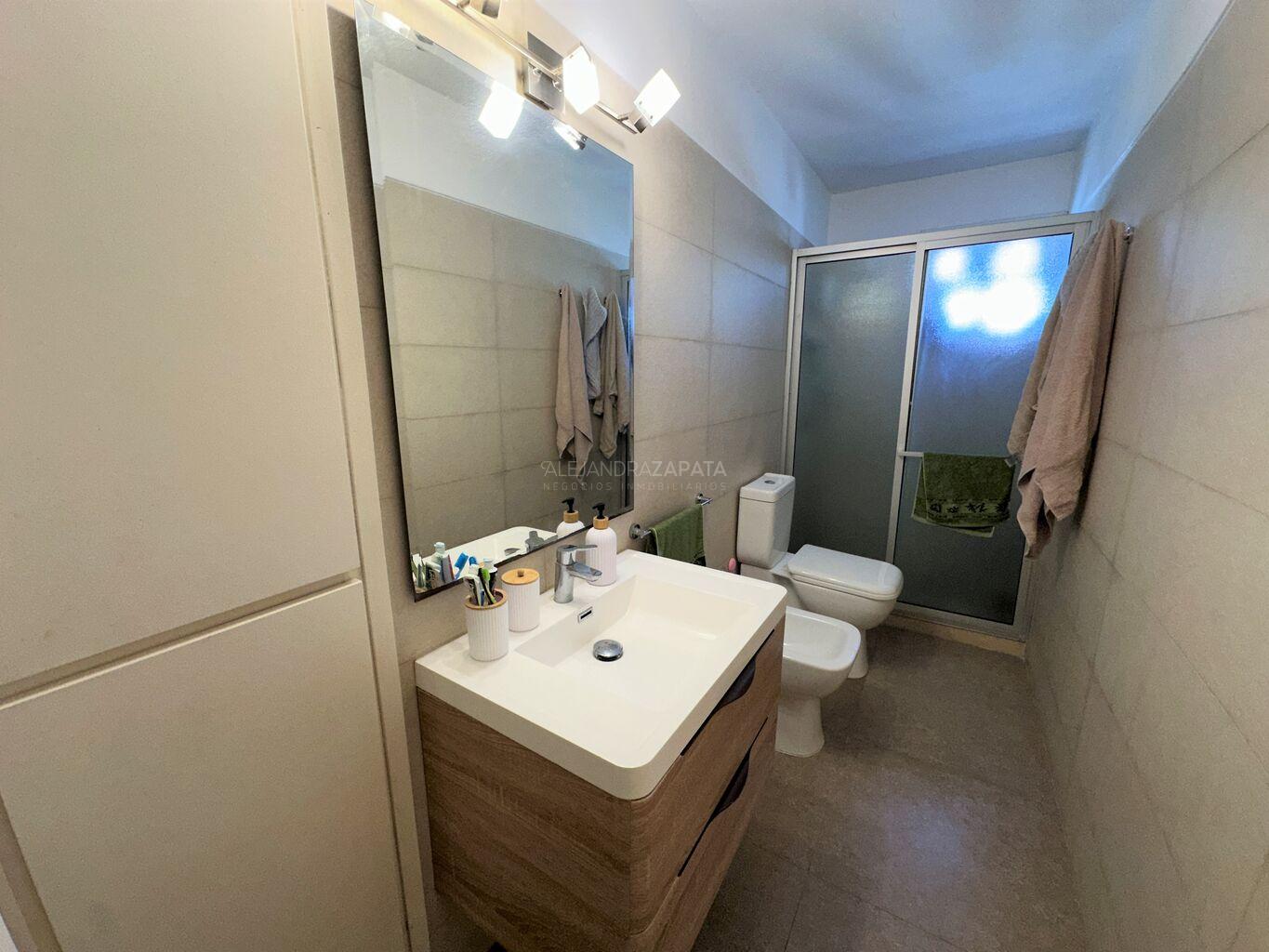 Un baño completo con luz y ventilación natural complementa este nivel y funciona también como toilette.