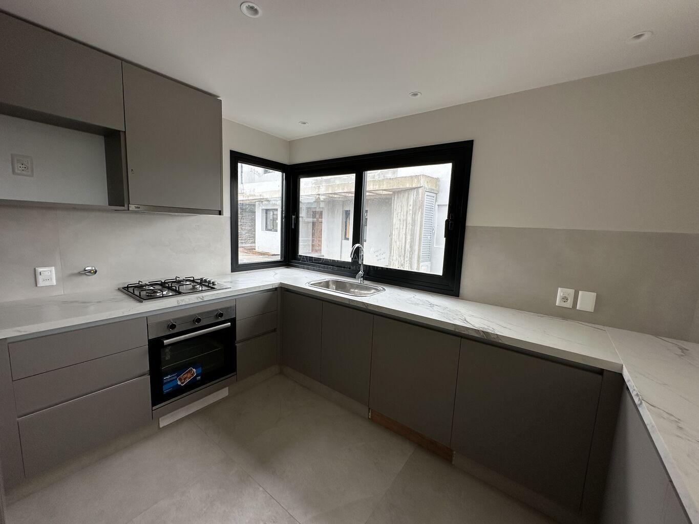 En planta baja nos encontramos con un amplio living comedor con estufa de alto rendimiento y salida a un jardín de 56m2 con parrillero pergolado, ideal para disfrutar en familia. La cocina es integrada con barra desayunadora. En esta planta hay un toilette y un amplio espacio de guardado bajo la escalera.