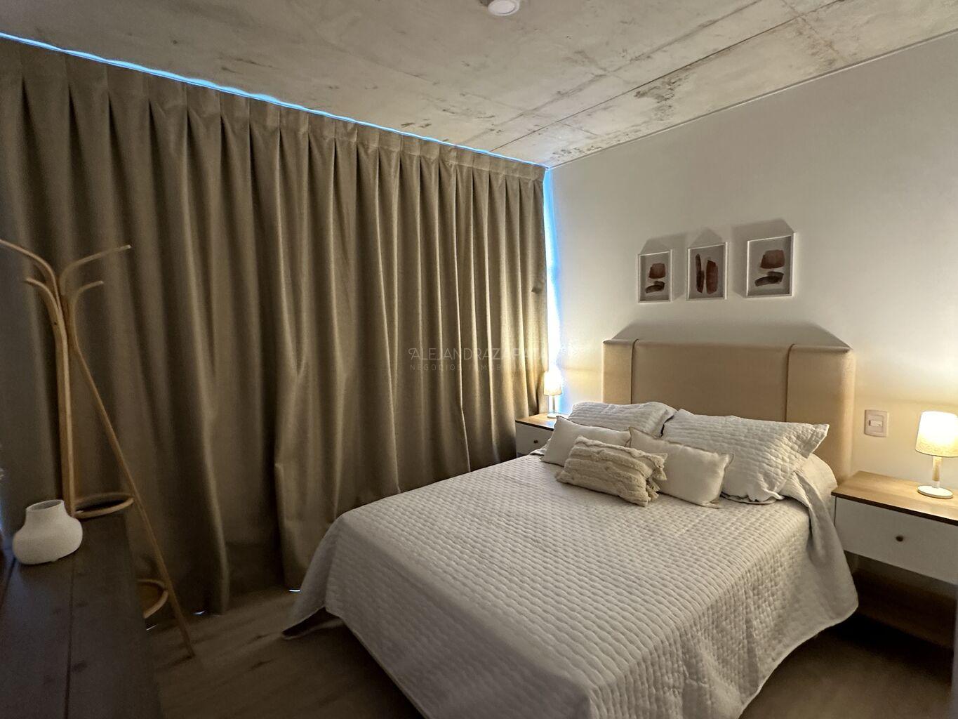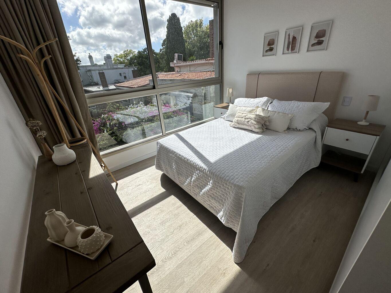 Dormitorio amplio con grandes ventanales de piso a techo también con ventanas en DVH. Moderna cortina blackout que quita totalmente el pasaje de luz.