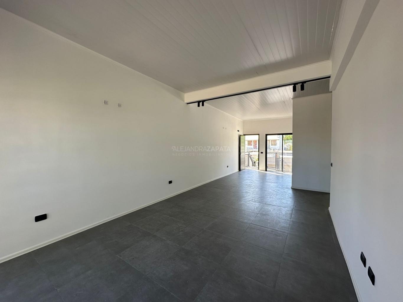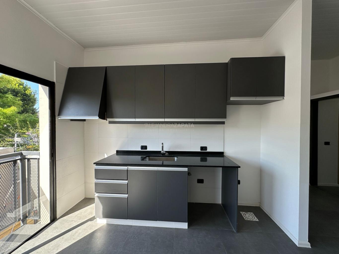 Living comedor con cocina integrada con gran profusión de placares. Salida a un a terracita al frente.