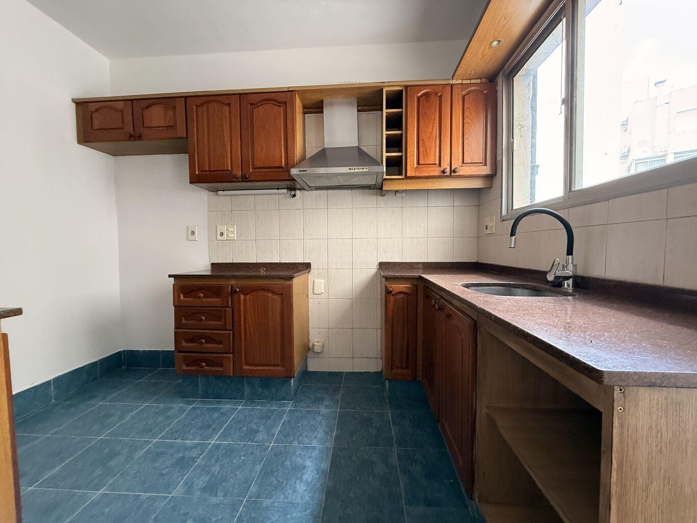 Desde el hall de recibo hay una puerta que nos conduce a la cocina con amplia profusión de placares de madera y doble mesada, gran ventanal con iluminación natural, dormitorio y baño de servicio completo.